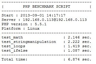Regarding loops, it is 40% faster. For ifelse, 27% faster. These two type of control functions are used very often. So the benefit gained from upgrading to PHP 5.5 will be more than 20%. Here are one more benefit from the new feature of php 5.5. I added support of Zend OPcache v7.0.2-dev on it. The total time is reduced to 6.463 sec. It optimized ifelse operation. The virtual machine, Centos 6.4 is 4cores AMD A8-3870 APU, 512 MB memory.