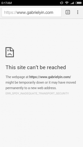 The cellphone is Android 4.4.4. The error is Error SPDY INADEQUATE TRANSPORT SECURITY.