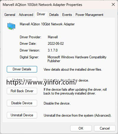 Windows 11 can recognize it as a Marvell AQtion 10Gbit Network Adapter. The connection speed is 2500Mbps or 2.5G.