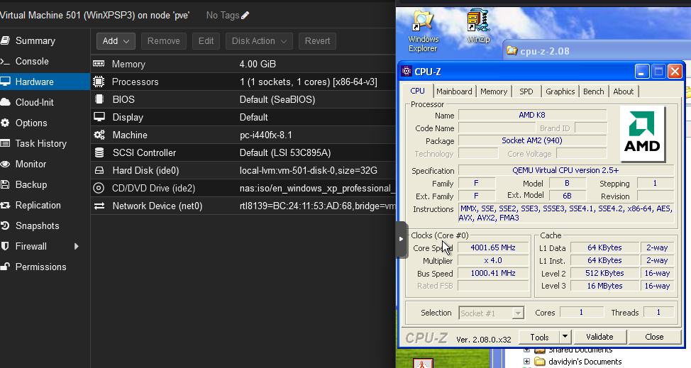Later I tried Windows XP SP3 virtual machine on the Proxmox Host.