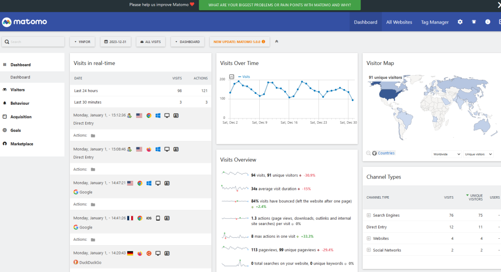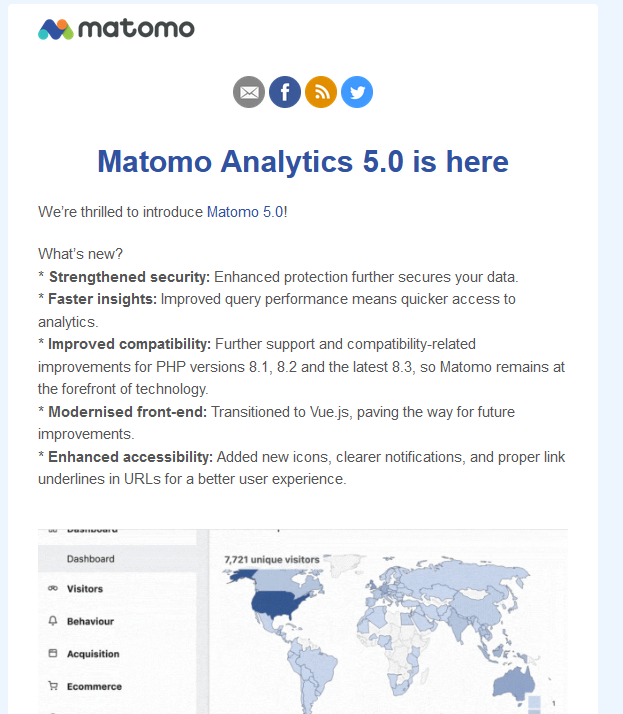 Today, when I checked the old emails of my second Gmail account, I saw an email with an update notice. I started to use Matomo on this blog in May 2023.