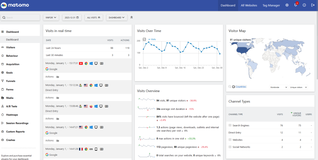 * Improved compatibility: Further support and compatibility-related improvements for PHP versions 8.1, 8.2 and the latest 8.3, so Matomo remains at the forefront of technology.
