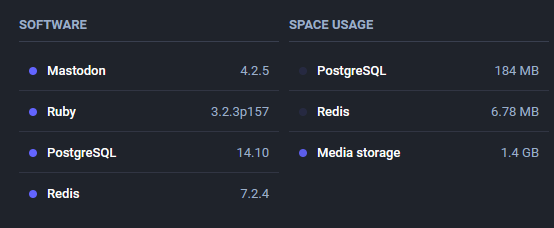 sudo su -mastodon cd live git fetch --tags git checkout v4.2.5 bundle install yarn install --frozen-lockfile exit sudo systemctl restart mastodon-sidekiq sudo systemctl reload mastodon-web sudo systemctl restart mastodon-streaming