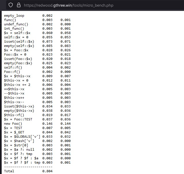 These speed tests do a lot of math calculations. It does not include the normal php webpage loading, CSS or static image files reading, or php mysql database connection. So the PHP website loading speed on the computer browser is not that big difference.