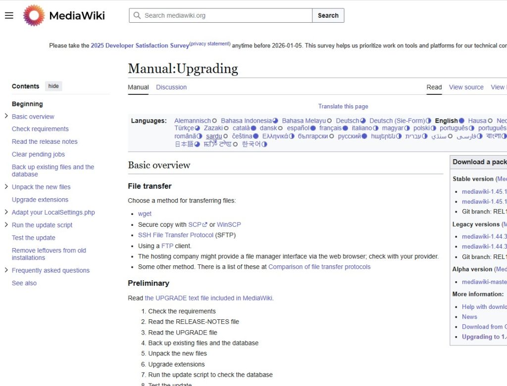 I am upgrading the Mediawiki installation from 1.44.2 to 1.45.1.